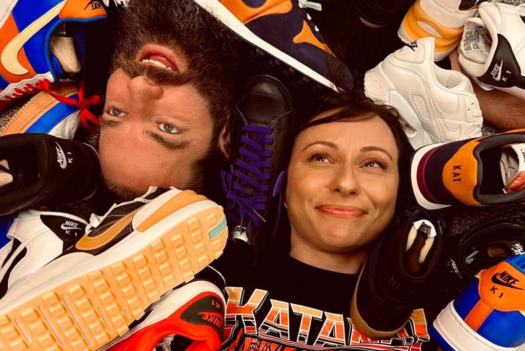 • Brands a stack of Nikes with the K1 logo and buries them on top of the two co-owners?